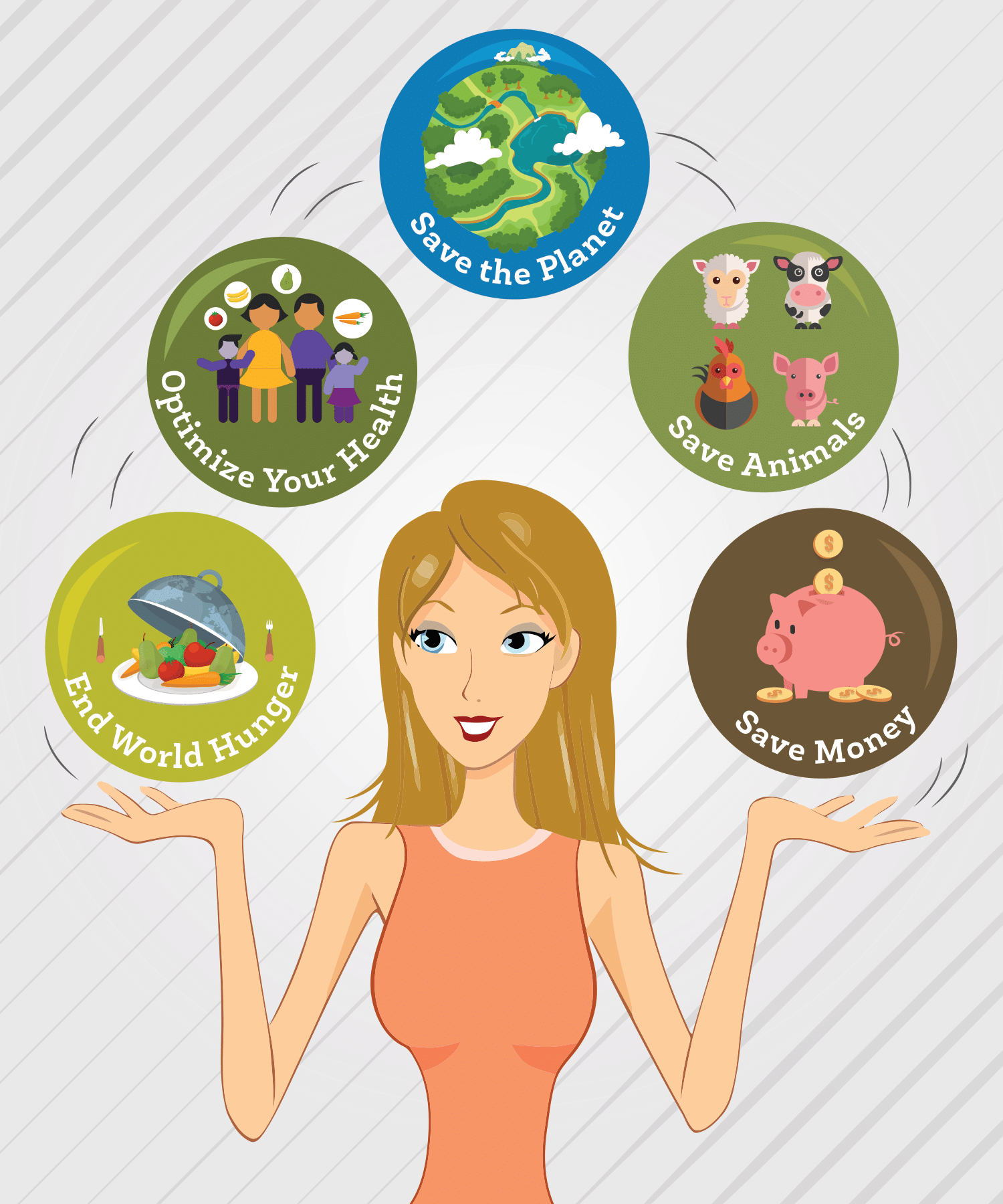 - Contribute to the eradication of world hunger and famine by helping to reallocate the world’s crops to feed hungry people instead of animals that are raised for meat and dairy consumption.