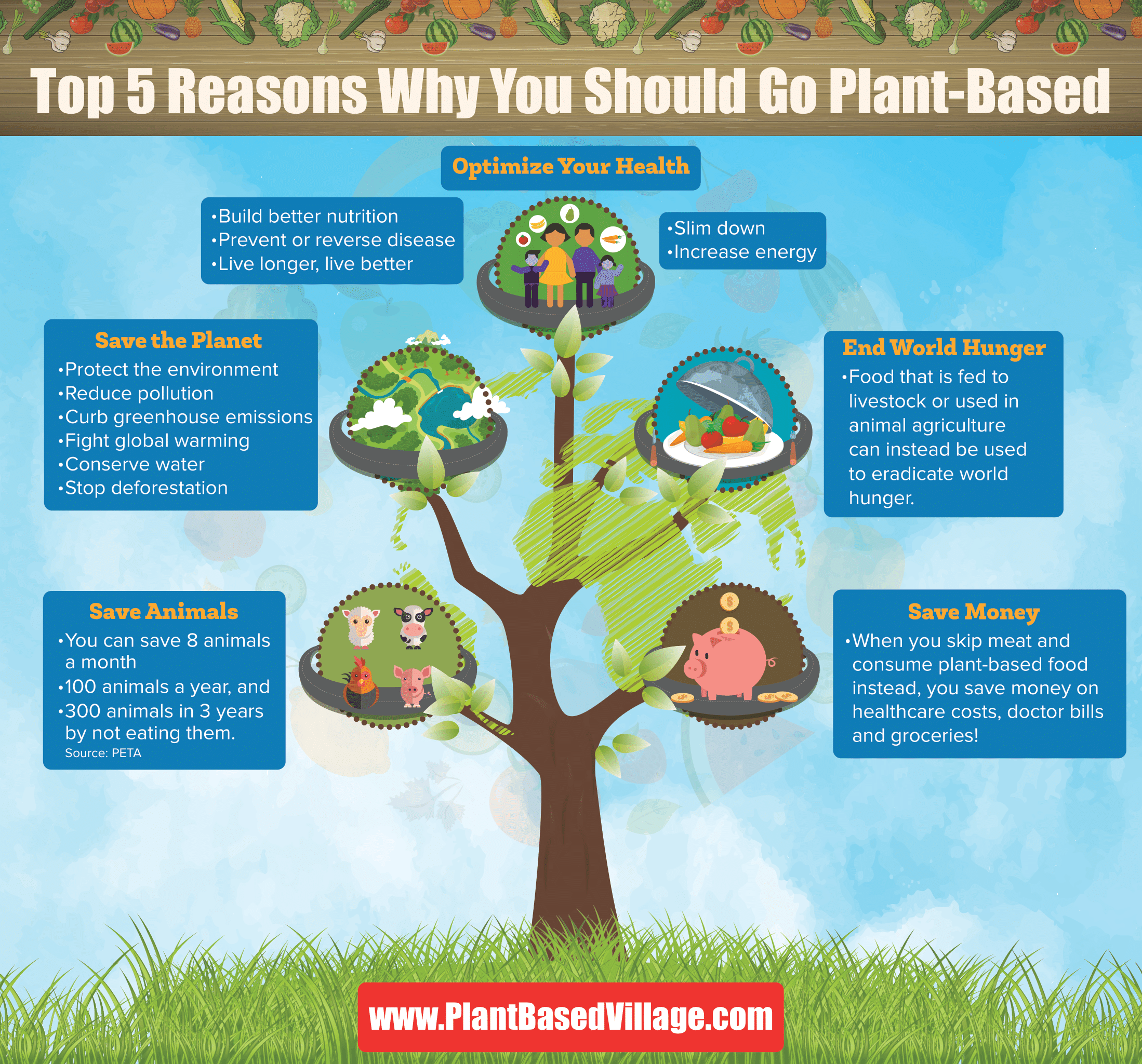 The Plant-Based Village provides indisputable proof that choosing delicious plant-based meals and reducing consumption of animal-based food whenever possible, you can help transform the quality of global health, support animal welfare, end world hunger and accomplish more good for the environment than all other environmental initiatives combined.